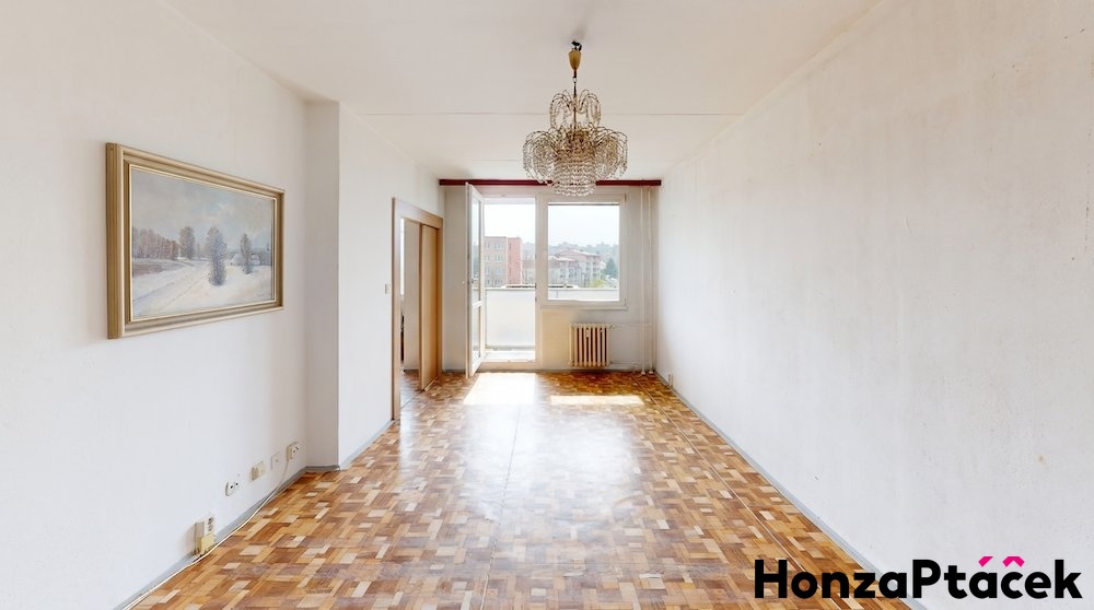 Dispozice bytu tvoří samostatná kuchyň, prostorný obývací pokoj, ložnice, předsíň a koupelna s WC. Na byt navazuje lodžie o výměře 3,24 m², která rozšiřuje užitný prostor a zvyšuje praktické využití bytu v běžném provozu. K dispozici je také sklepní kóje. Uspořádání místností působí přehledně a dává dobrý základ pro modernizaci i efektivní využití celé plochy.
