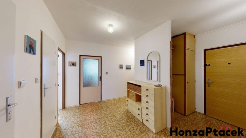 Byt se nachází ve třetím patře panelového domu bez výtahu z celkových čtyř. Velmi dobře udržovaný původní stav, má zděné jádro, koupelnu s vanou a 2x samostatné WC, podlahy původní lino. K bytu náleží zasklená lodžie o nadstandardní velikosti 10m² a komora na patře před bytem o velikosti 5m². Byt je celkově vhodný k úpravám či rekonstrukci. Díky 2x stoupačkám je vhodný i pro vícegenerační bydlení, ale nejčastěji se tyto byty rekonstruují do výsledné dispozice se dvěmi koupelnami a 2x WC. Vhodný k přestavbě na 4+kk nebo 5+kk. Orientace bytu je na jih a sever, výhodou je slepá klidná ulice. Dům prošel revitalizací, celý je zateplený, opravená střecha, zvětšené zasklené lodžie, na každém patře jsou pouze dva byty. V blízkosti domu se nachází veškerá občanská vybavenost včetně obchodního centra Westfield Černý Most a IKEA. Velmi dobrá dostupnost MHD, metro Černý Most chůzí 7 minut.