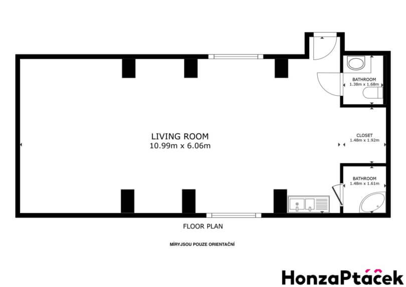 Samotný prostor působí velmi klidně a harmonicky, nabízí skutečně příjemnou atmosféru pro práci i odpočinek. Vstup vede do hlavní místnosti vhodné jako studio či sál, doplněné o reprezentativní toaletu, malou koupelnu se sprchou a praktický prostor pro převlékání.