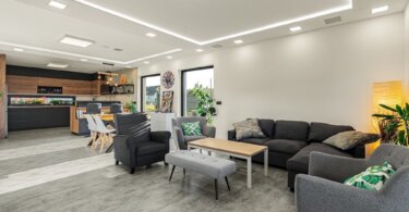 Dům nabízí vysoký komfort – podlahové vytápění ve všech místnostech, trojskla s venkovními žaluziemi a inteligentní systém Loxone, který řídí vytápění, osvětlení, žaluzie, vstup i bezpečnostní prvky. Samozřejmostí je zabudovaný audio systém a příjemné noční podsvícení.