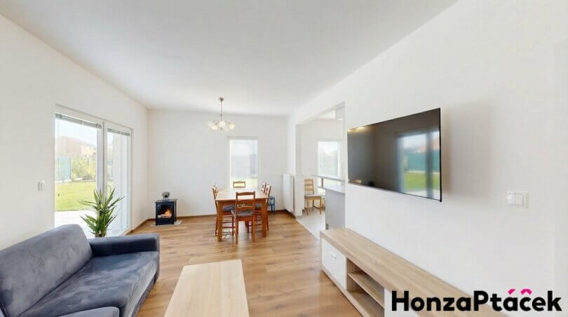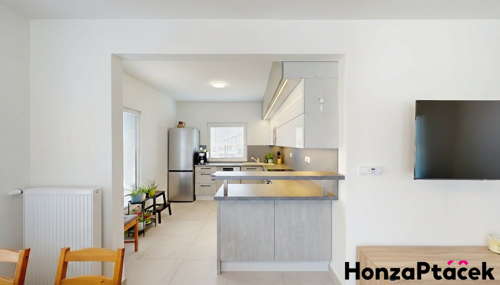 K NASTĚHOVÁNÍ !!! Novostavba moderního rodinného domu o dispozici 4+kk, nacházející se v klidné lokalitě obce Nehvizdy (Praha-východ), v ulici Vestecká. Dům byl zkolaudován v roce 2025, je součástí dvojdomu a disponuje užitnou plochou 96 m², pozemkem o výměře 293 m², zahradou, terasu 12 m² a dvěma parkovacími místy na vlastním, nově oploceném, pozemku.