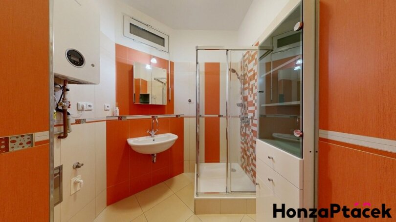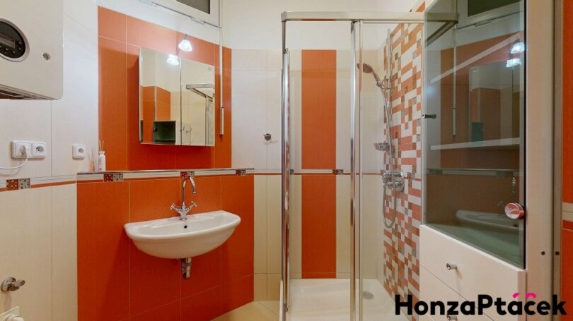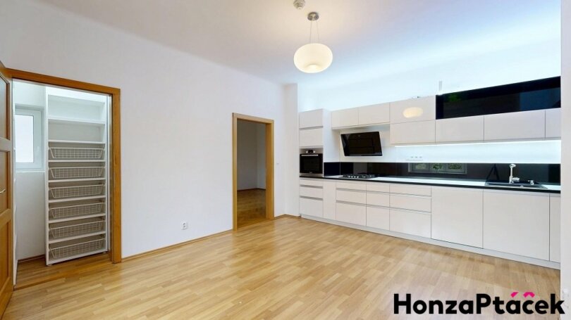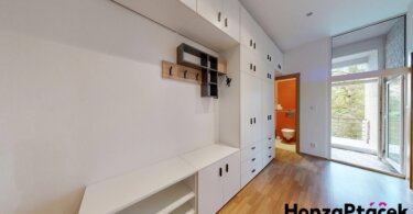 Hlavní obytná místnost nabízí dostatek prostoru pro obývací i jídelní část. Moderní kuchyňská linka je vybavena spotřebiči Bosch a poskytuje komfortní zázemí pro vaření. K dispozici je také menší komora pro uložení věcí. Koupelna prošla rekonstrukcí a je vybavena sprchovým koutem, výhodou je i samostatné WC. V prostorné chodbě se nachází vestavěná sestava skříní, která elegantně řeší úložný prostor. Z chodby je vstup na lodžii s výhledem do klidného vnitrobloku se zelení – ideální místo k ranní kávě či večernímu posezení.